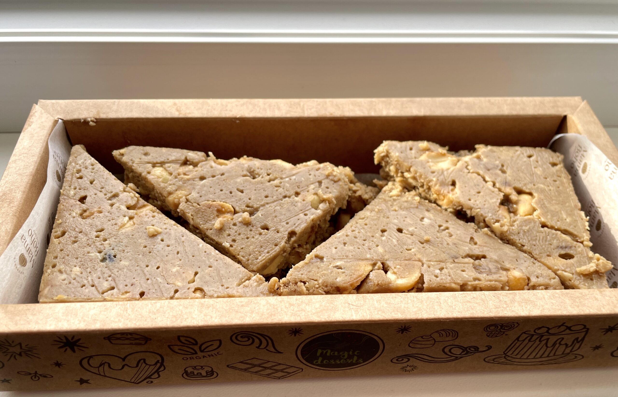Состав: кокосовая стружка, арахисовая крошка,семечки подсолнуха, масло какао, кокосовый сахар, арахисовая паста, ваниль, изюм