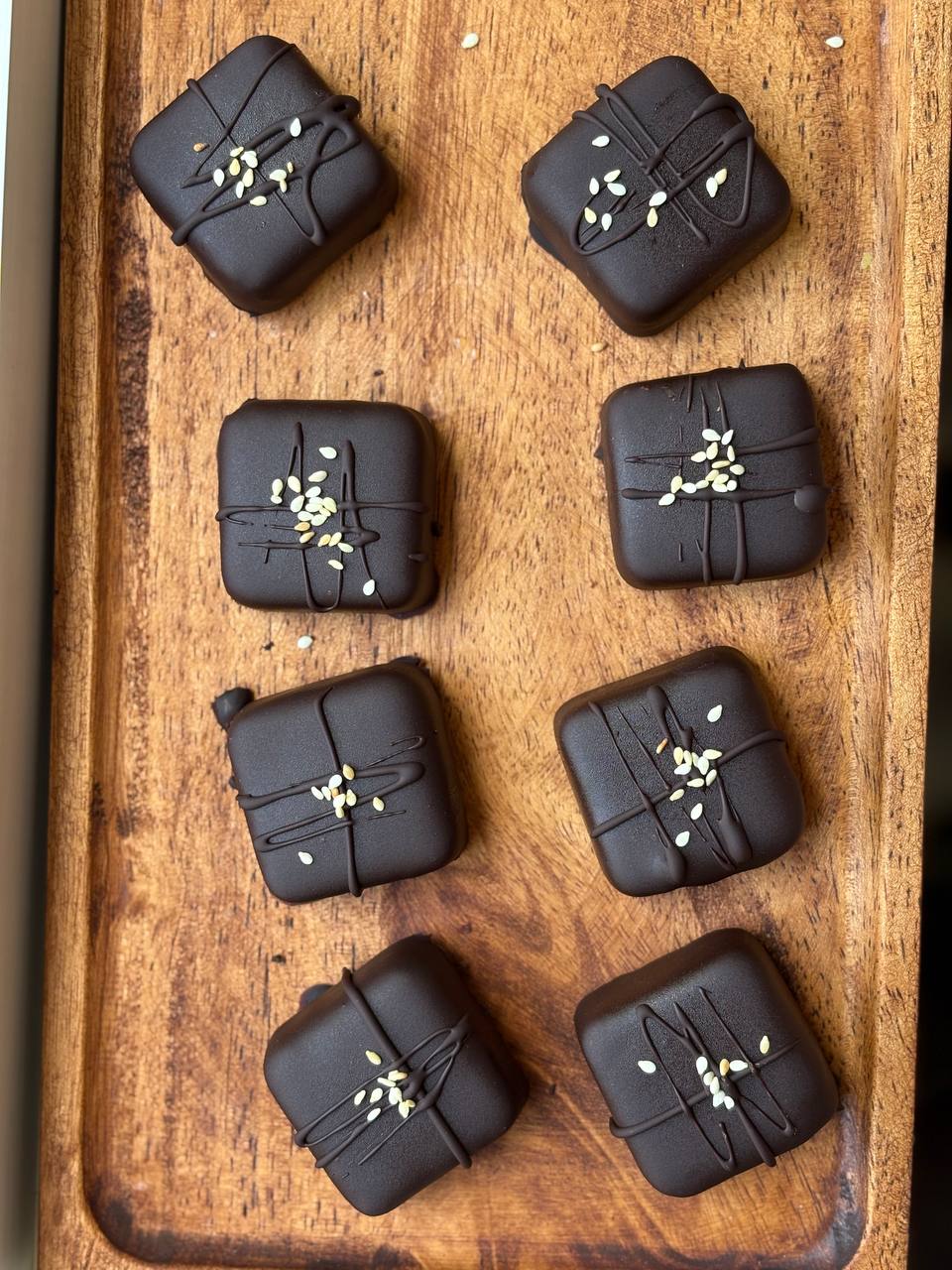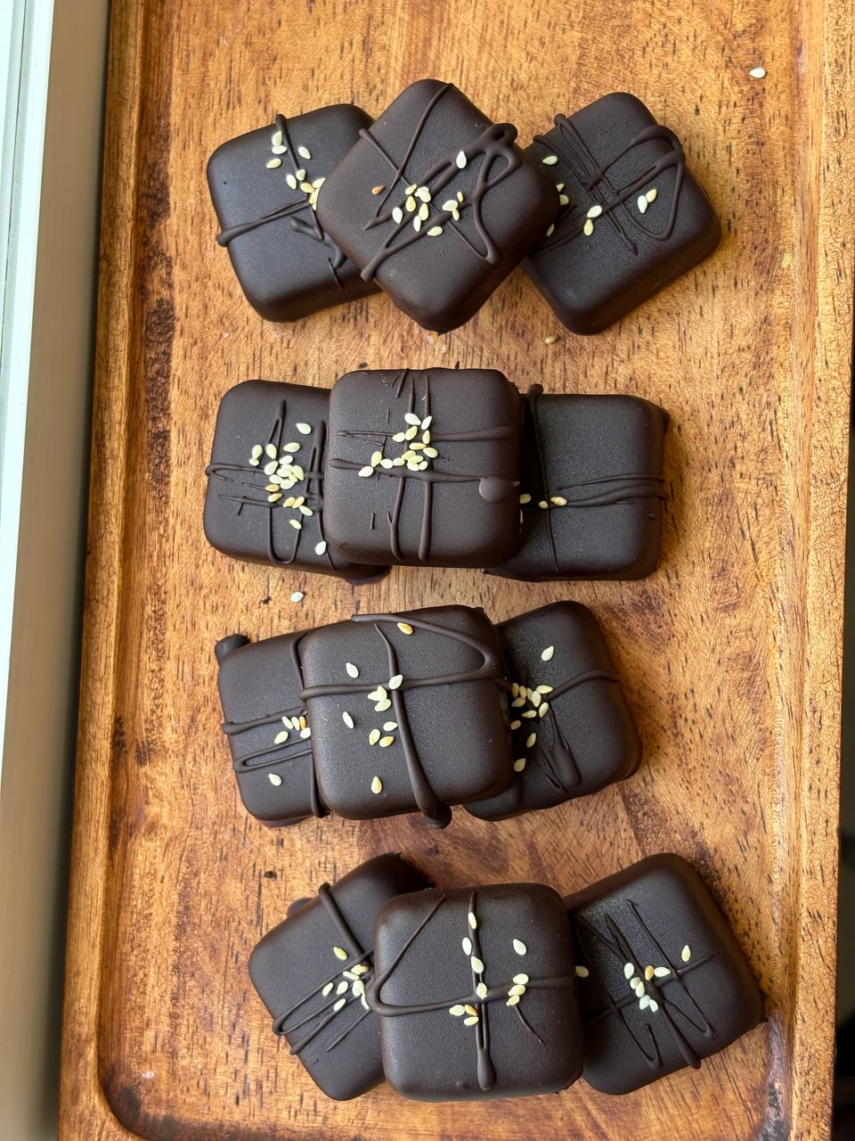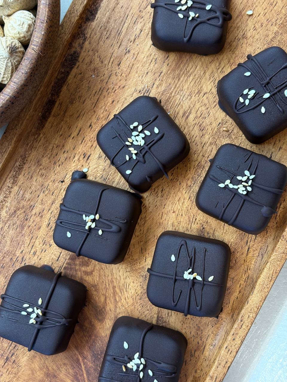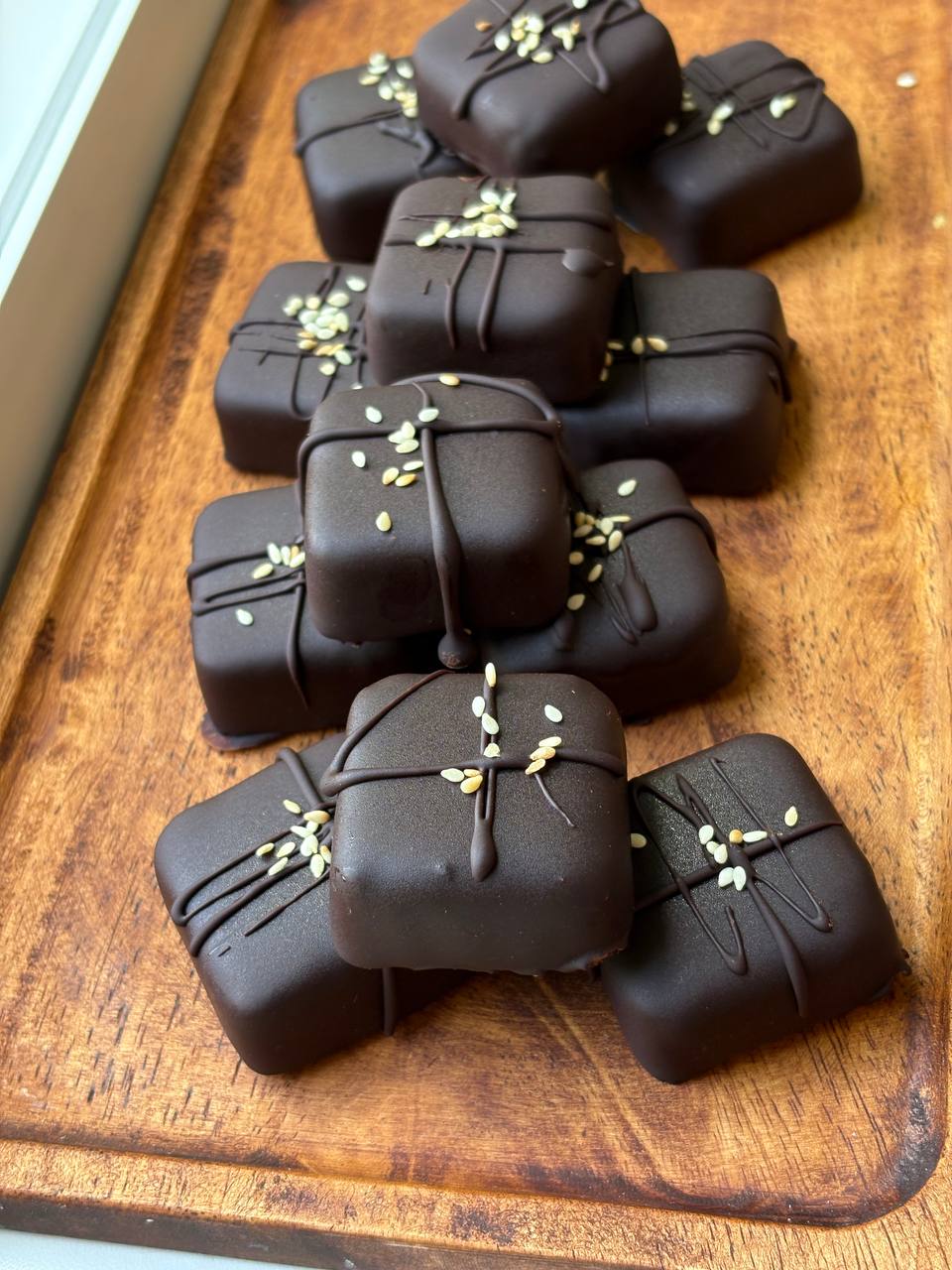 Состав: семечки кунжута, семечки подсолнуха, арахисовая паста, тахини, сироп топинамбура, масло какао.