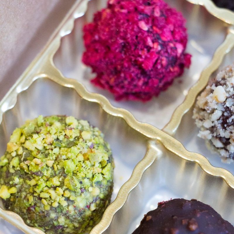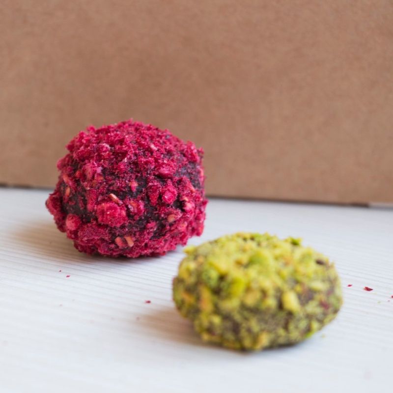 Состав: активированный кешью, сублимированная малина, масло какао, сироп топинамбура, гималайская соль, raw шоколад.