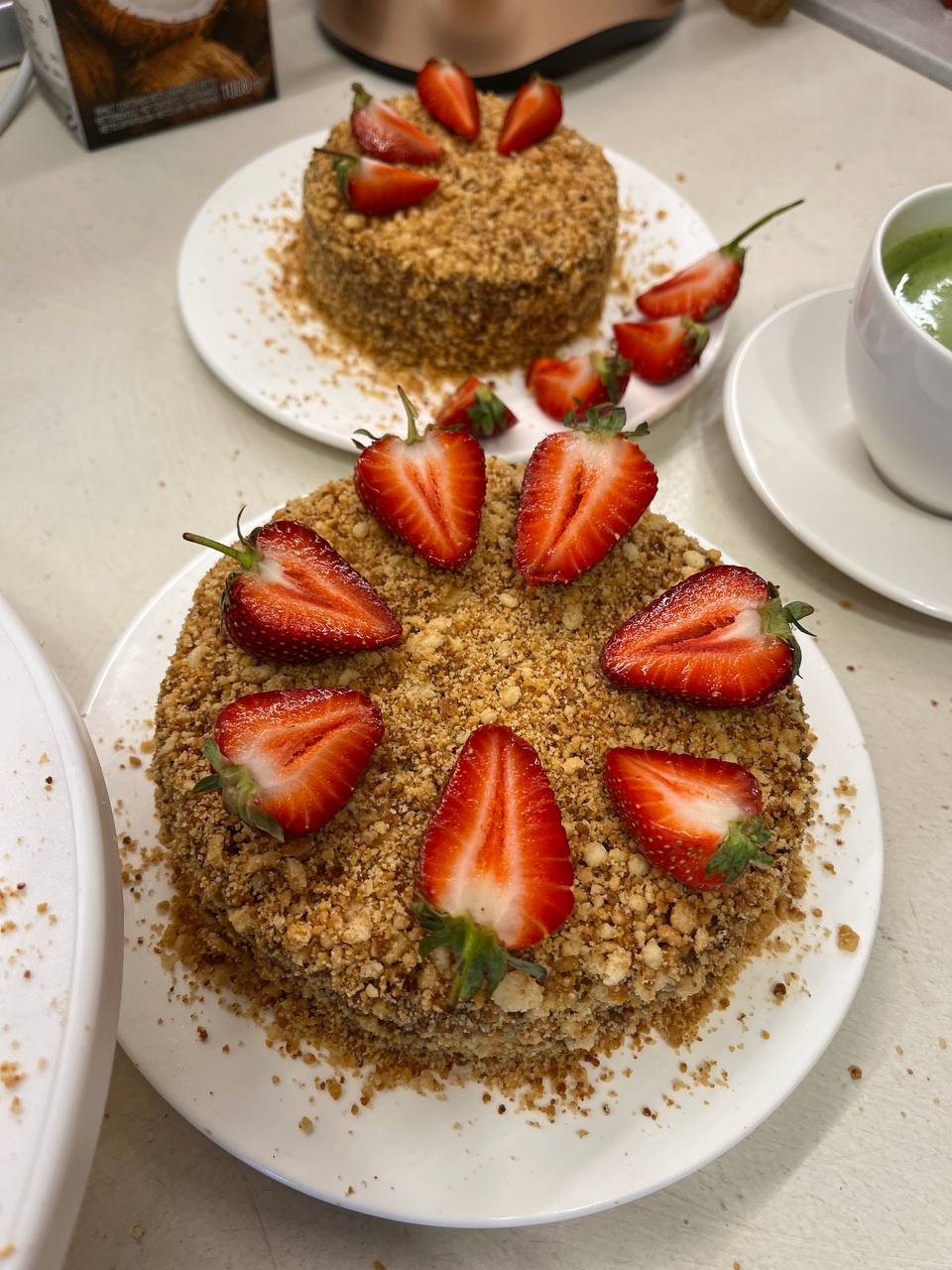 Идеальное сочетание карамельного крема и вишни, пропитанные коржи — всё это про полезный веган наполеон без молочки и сахара