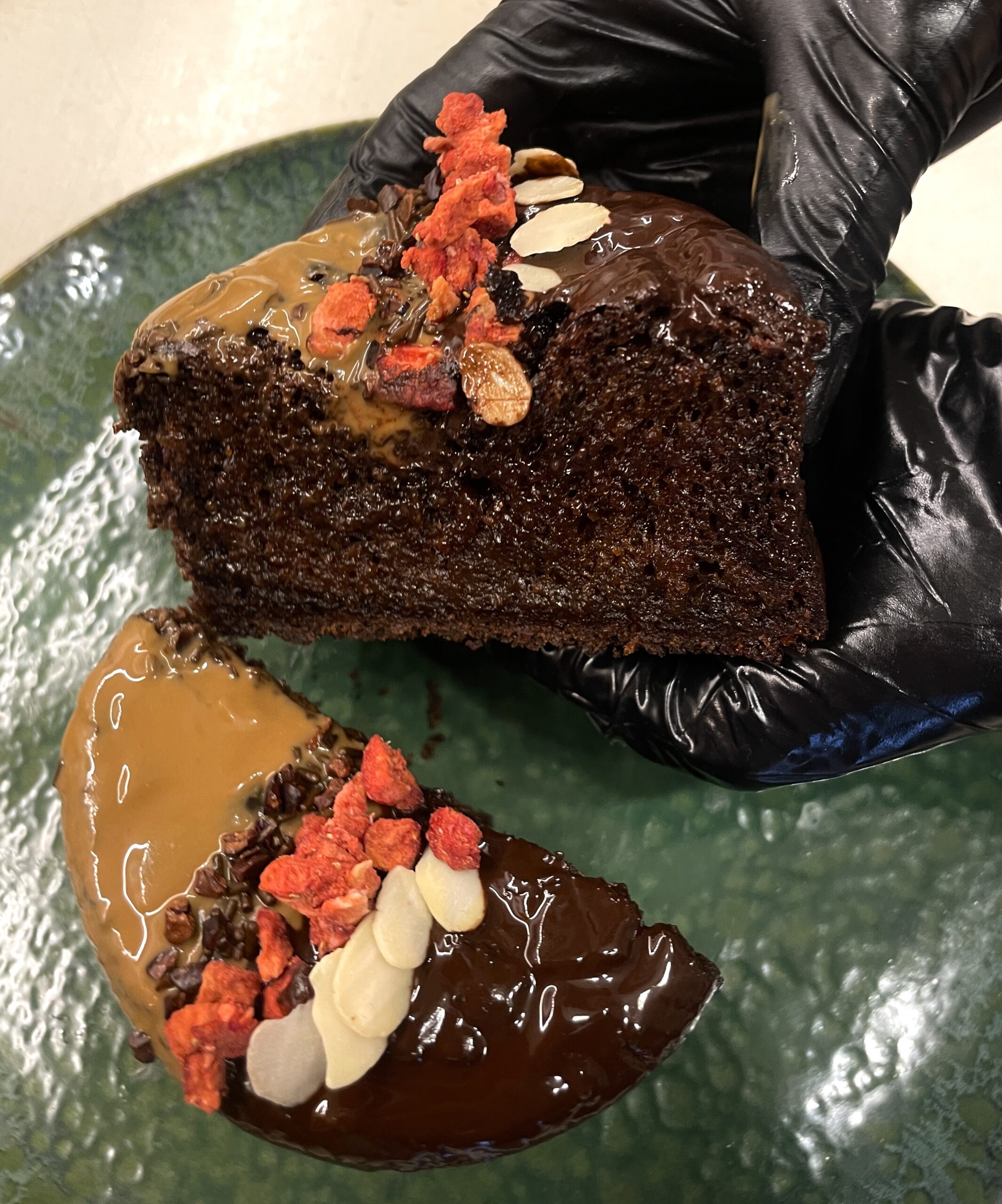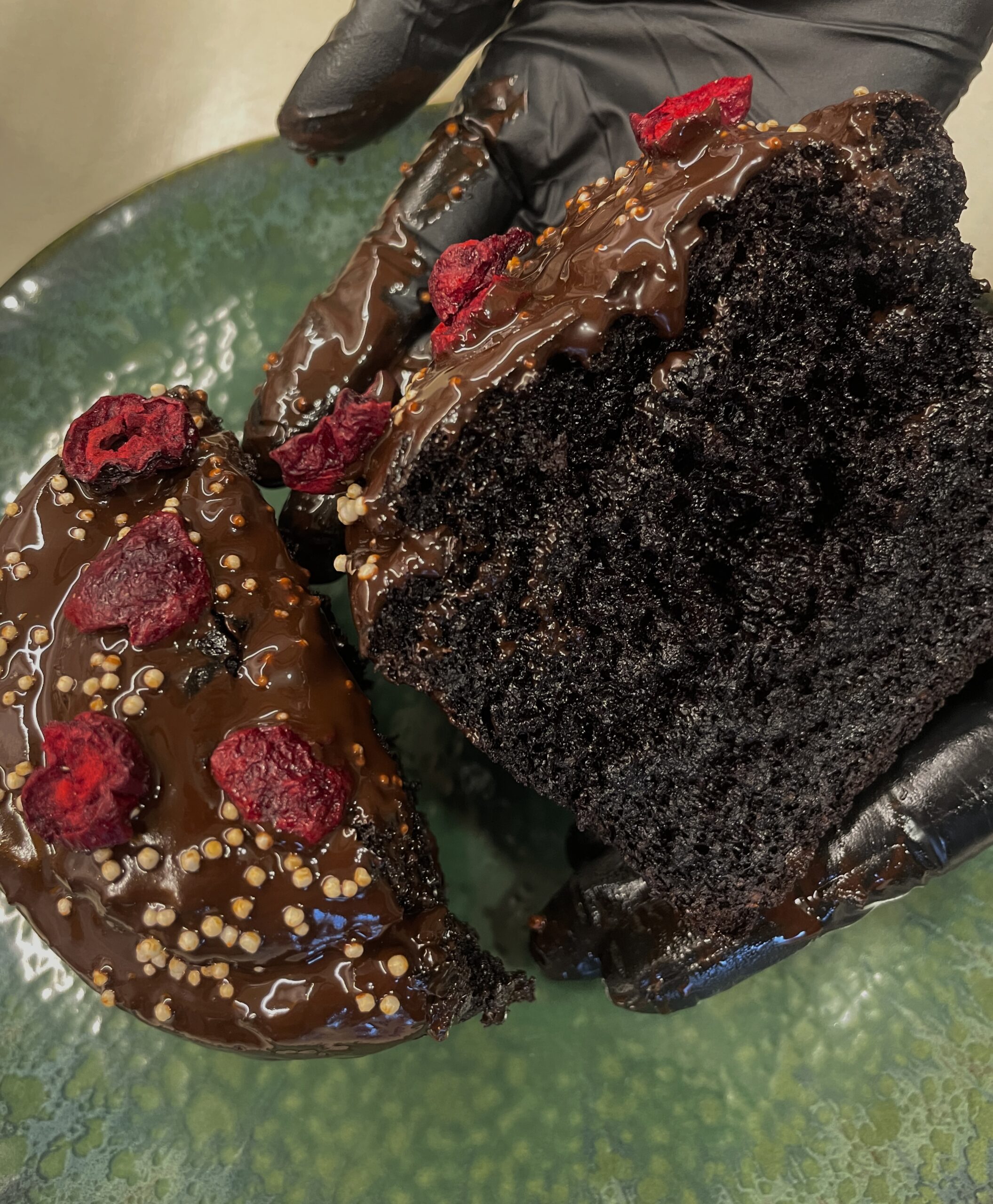 Состав: фундучная паста, какао-порошок, кокосовое молоко, мука из светлого льна, масло виноградных косточек, мука без глютена, baking soda, кокосовый сахар, ваниль.
