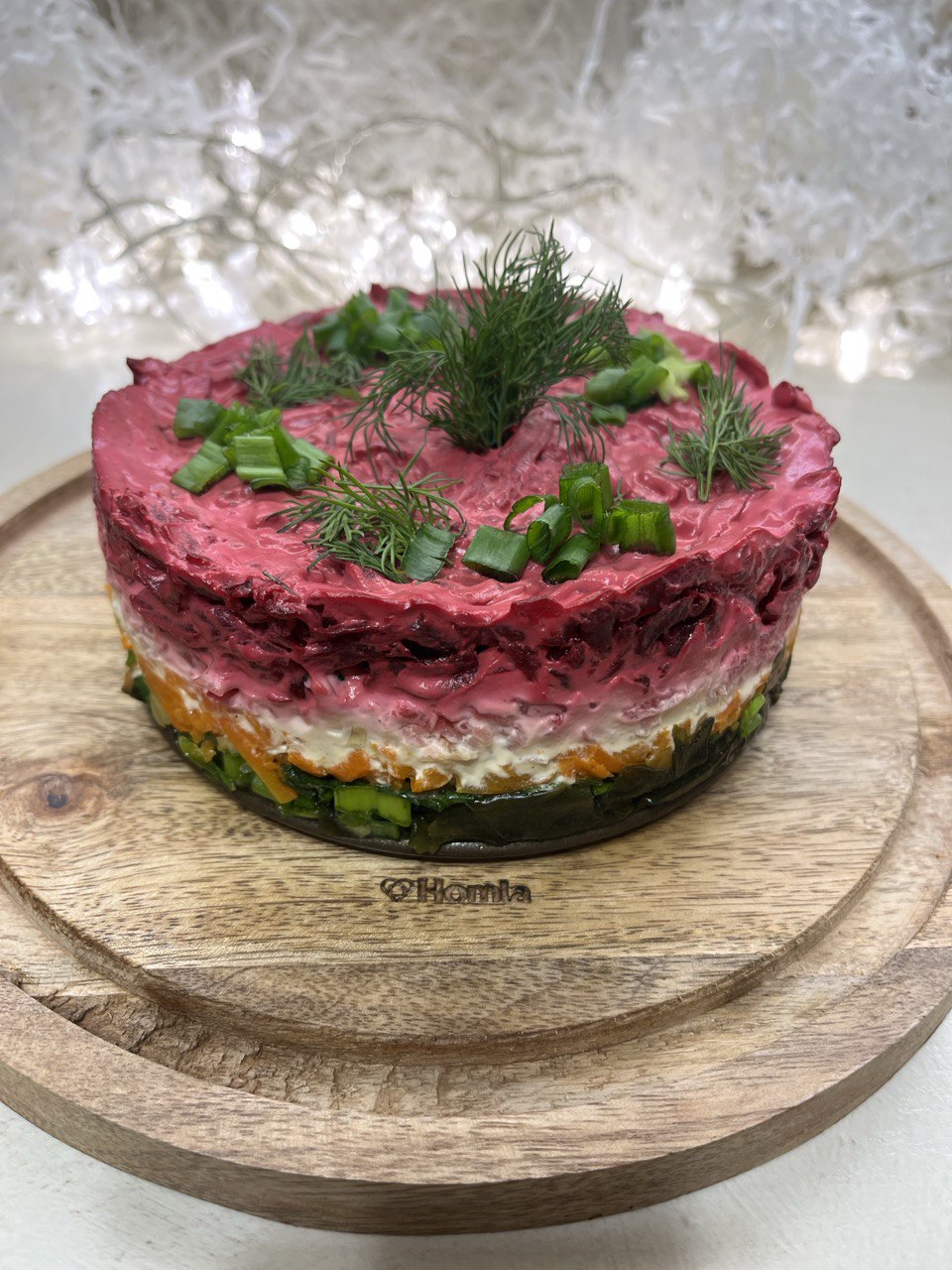 Состав: свекла, морковка, картошка, зеленый лук, водоросли Вакаме, кешьюнез