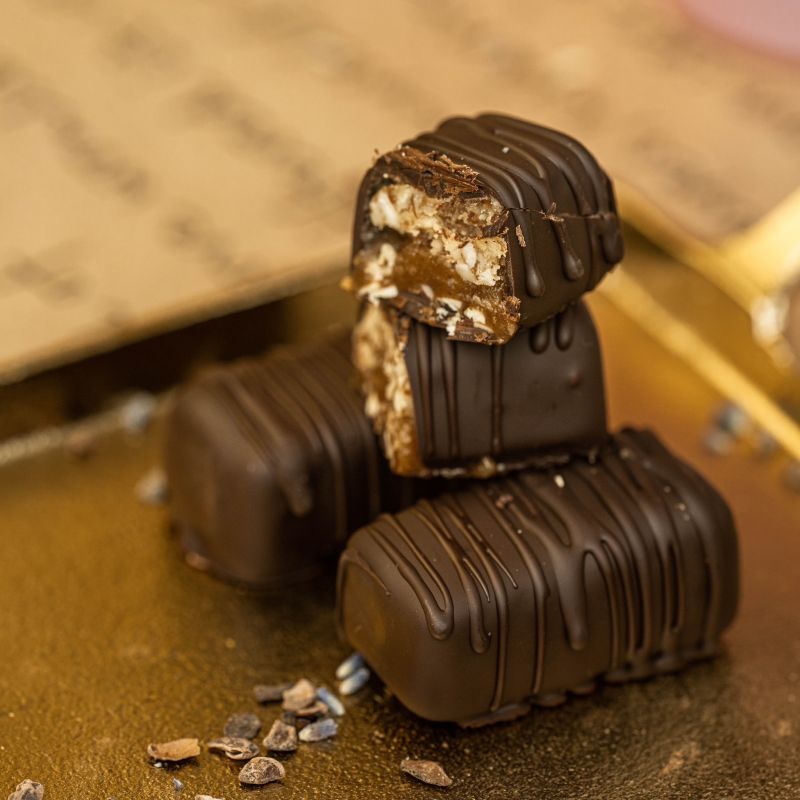 Состав: миндаль активированный, сироп топинамбура, какао масло, соль морская, миндальный урбеч, кокосовое масло, ваниль.